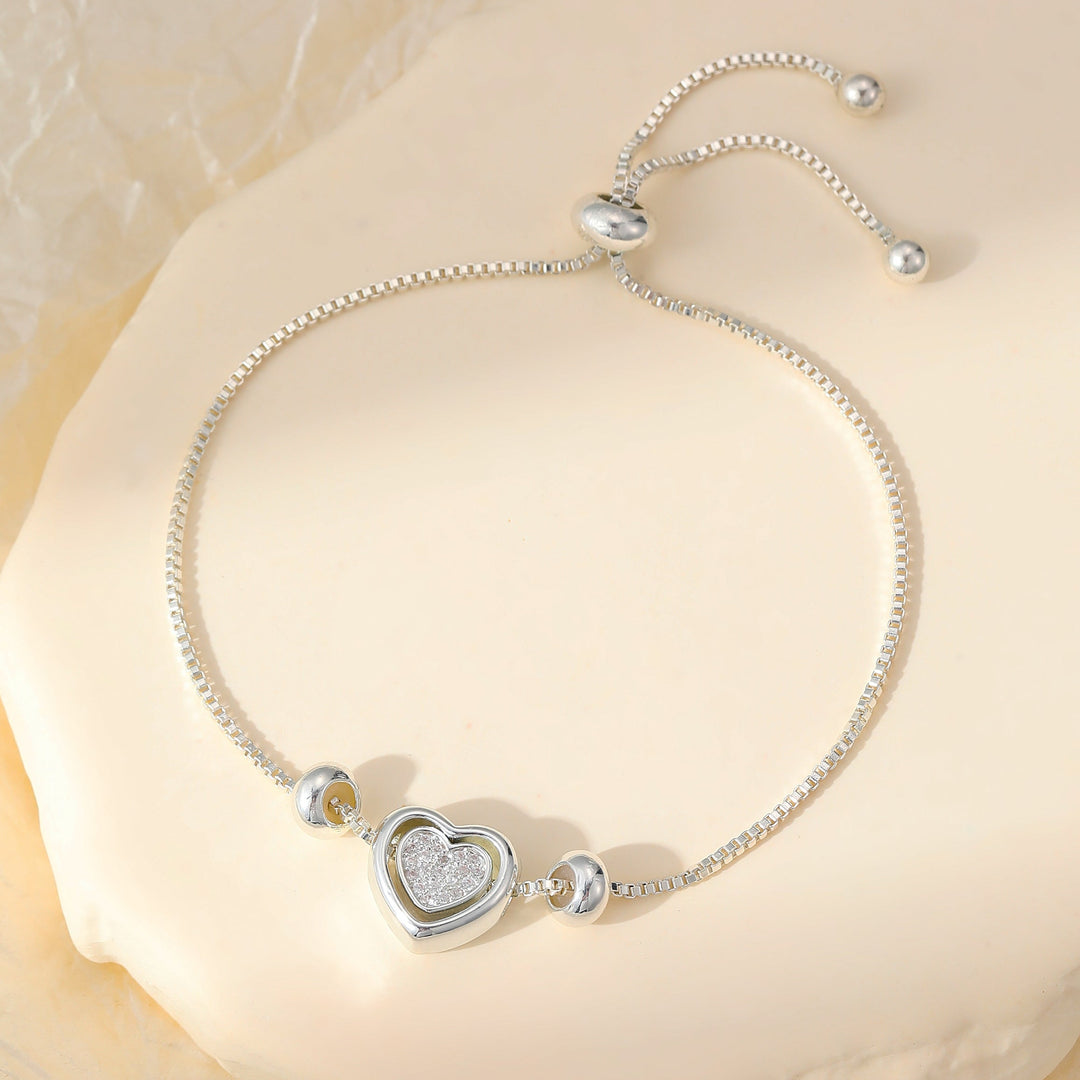 Honor your unique connection with the Double Heart Friendship Bracelet in silver. This adjustable piece, adorned with two lovely heart charms, ensures a comfortable fit for all. Its elegant style makes it an adorable accessory and a thoughtful gift choice.