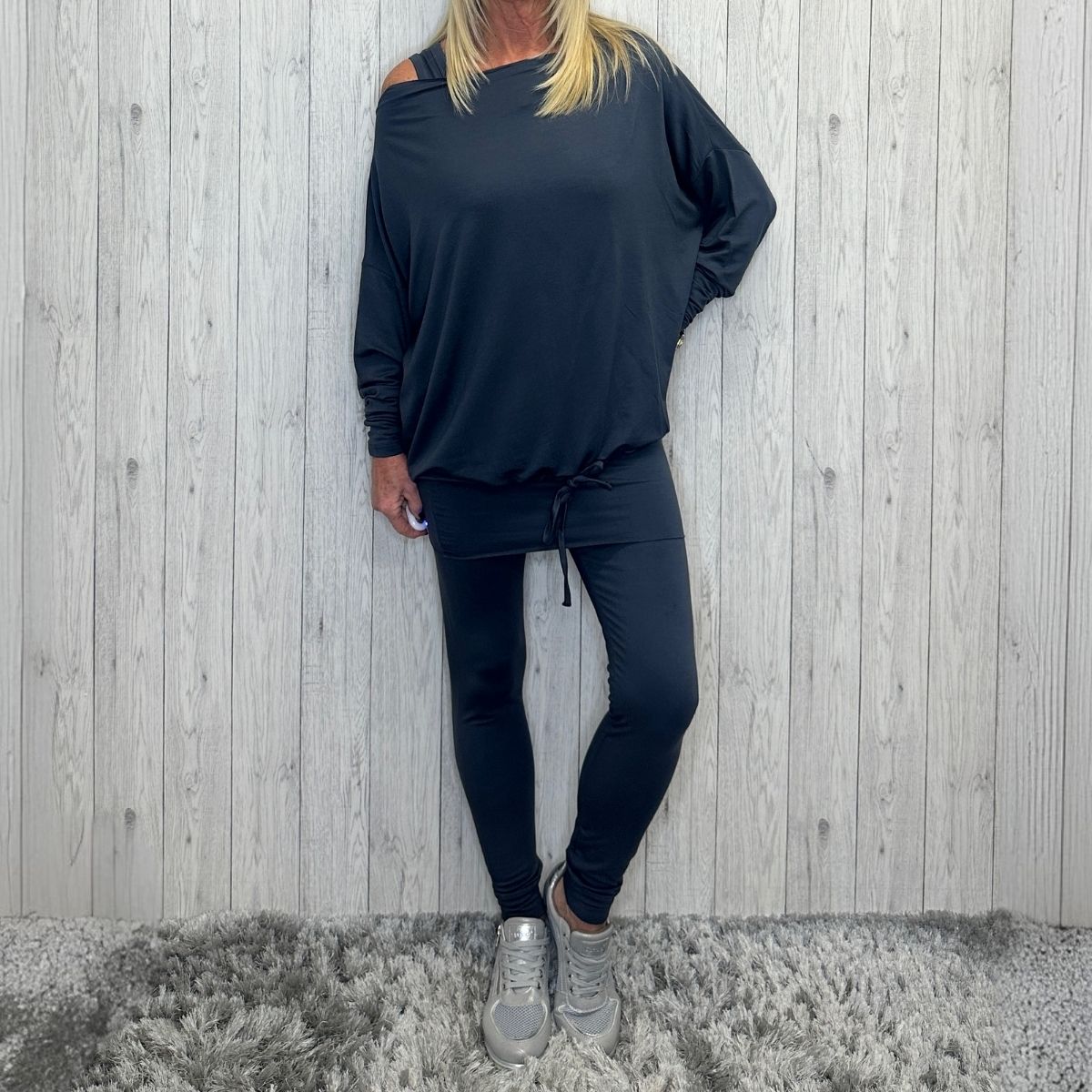 Introducing the Sinatra Charcoal Grey 3 Piece Trouser Set – your ticket to looking absolutely fabulous with zero fuss. This versatile trio features tailored cuff bottom trousers, a sleek sleeveless vest, and a stunning long sleeve cowl neck top with a tie hem, all in sophisticated charcoal grey. Whether you're lounging at home, heading to the office, or out for brunch, these pieces work beautifully together or separately for endless styling possibilities. Comfort and elegance collide in this must-have set that proves you can be effortlessly chic.