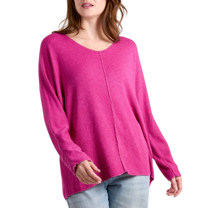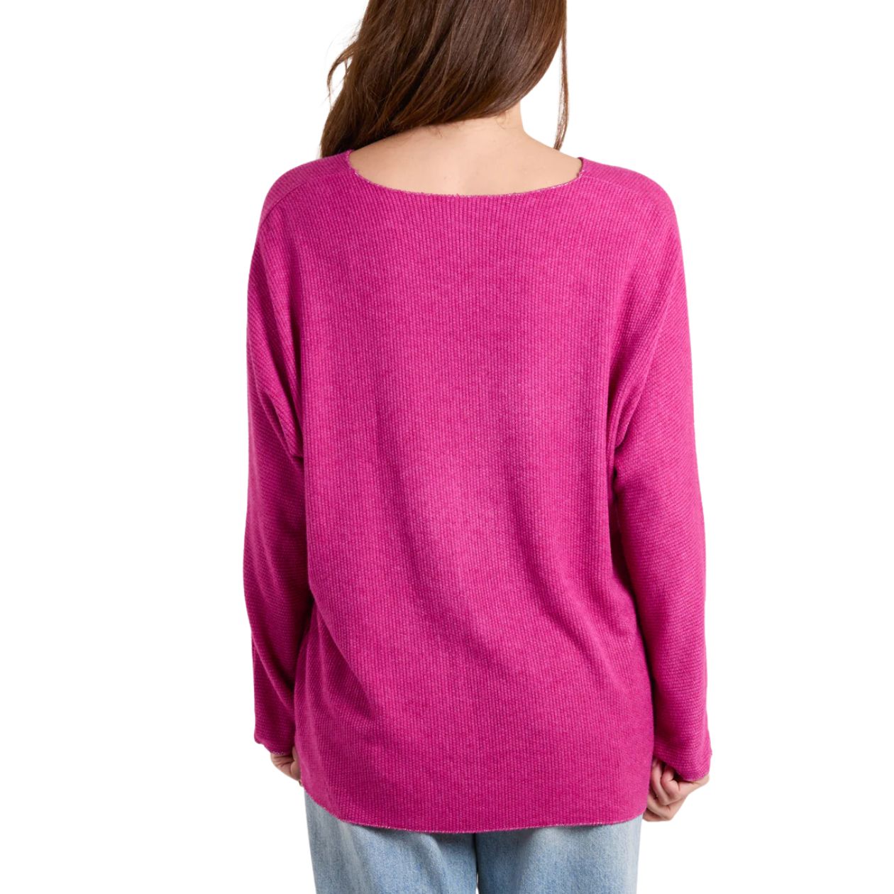 Avery V Neck Rib Fine Knit Top Raspberry Pink