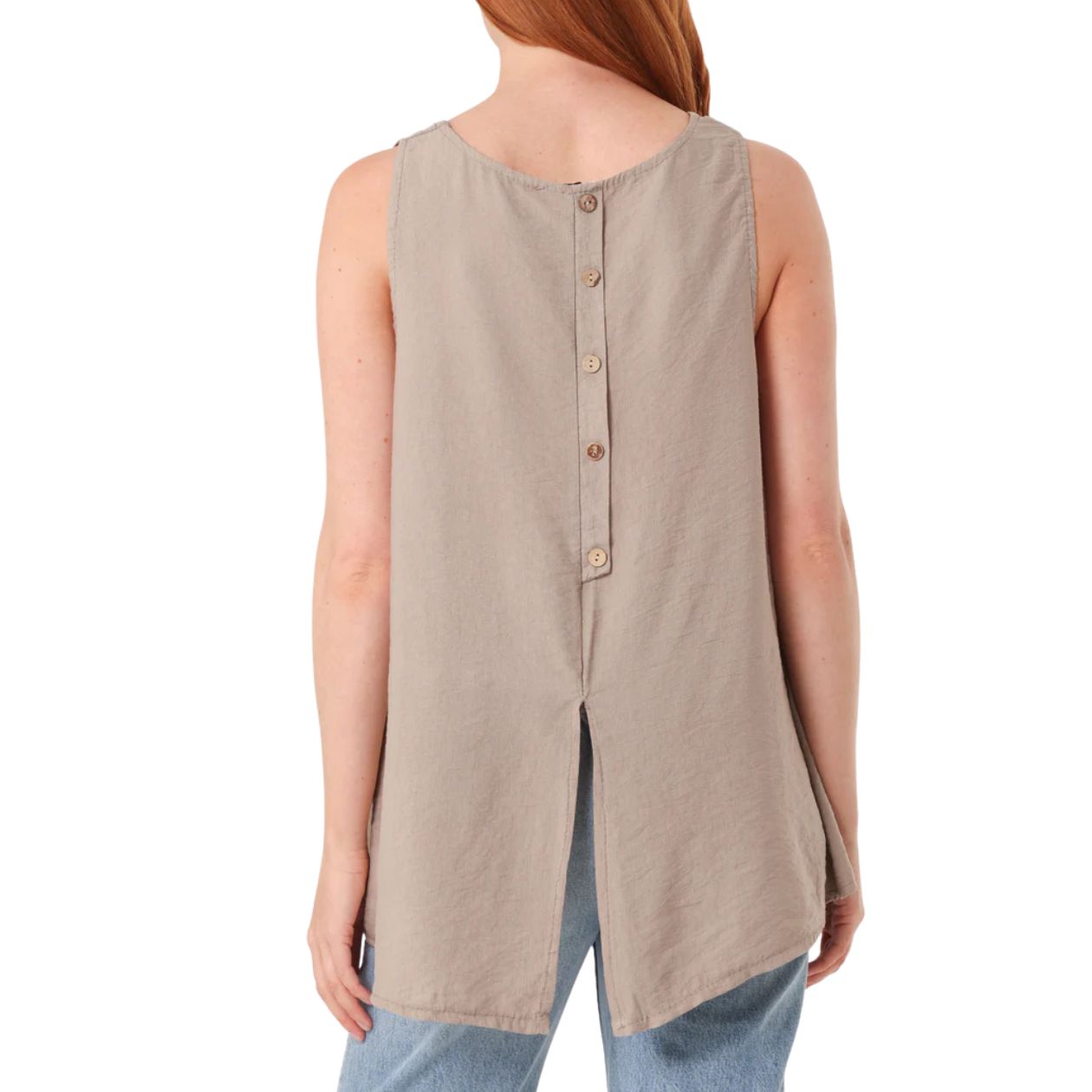Briony Button Back Scoop Neck Vest Top Mocha Brown