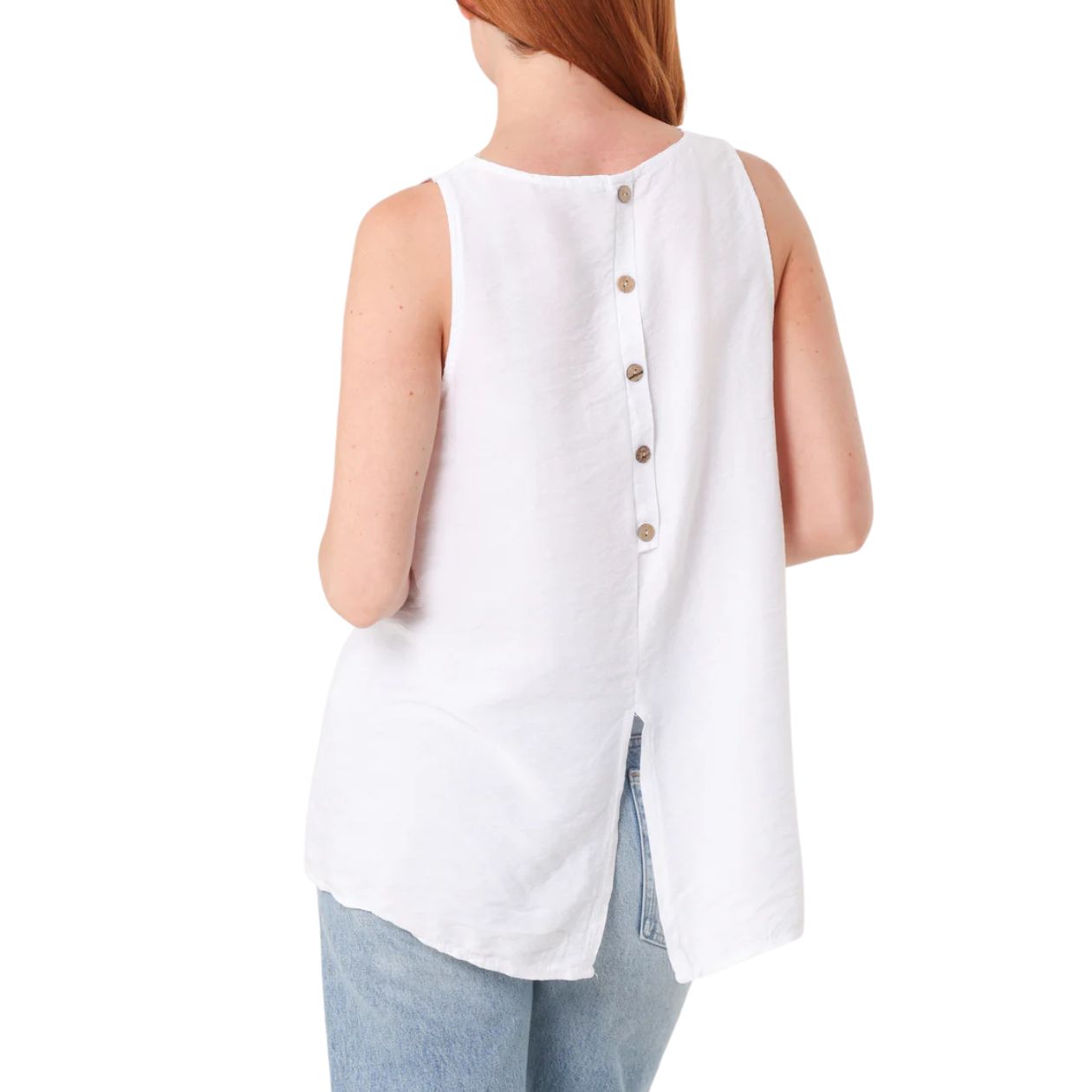 Briony Button Back Scoop Neck Vest Top White