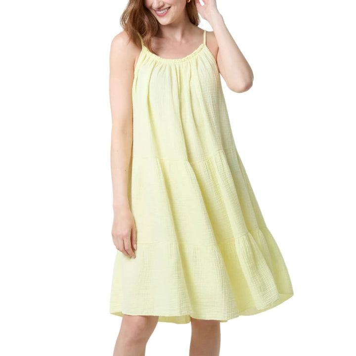 Step into sunshine with our Cora Cotton Cheesecloth Dress. The ultra-soft cotton fabric feels luxurious against your skin, while the cheerful lemon yellow hue brightens any day. Its charming tiered design creates a flowing silhouette, complemented by delicate spaghetti straps for a feminine touch. Wonderfully lightweight and airy, it's your perfect companion for beach outings or summer festivities – the ultimate warm-weather dress for effortless style.