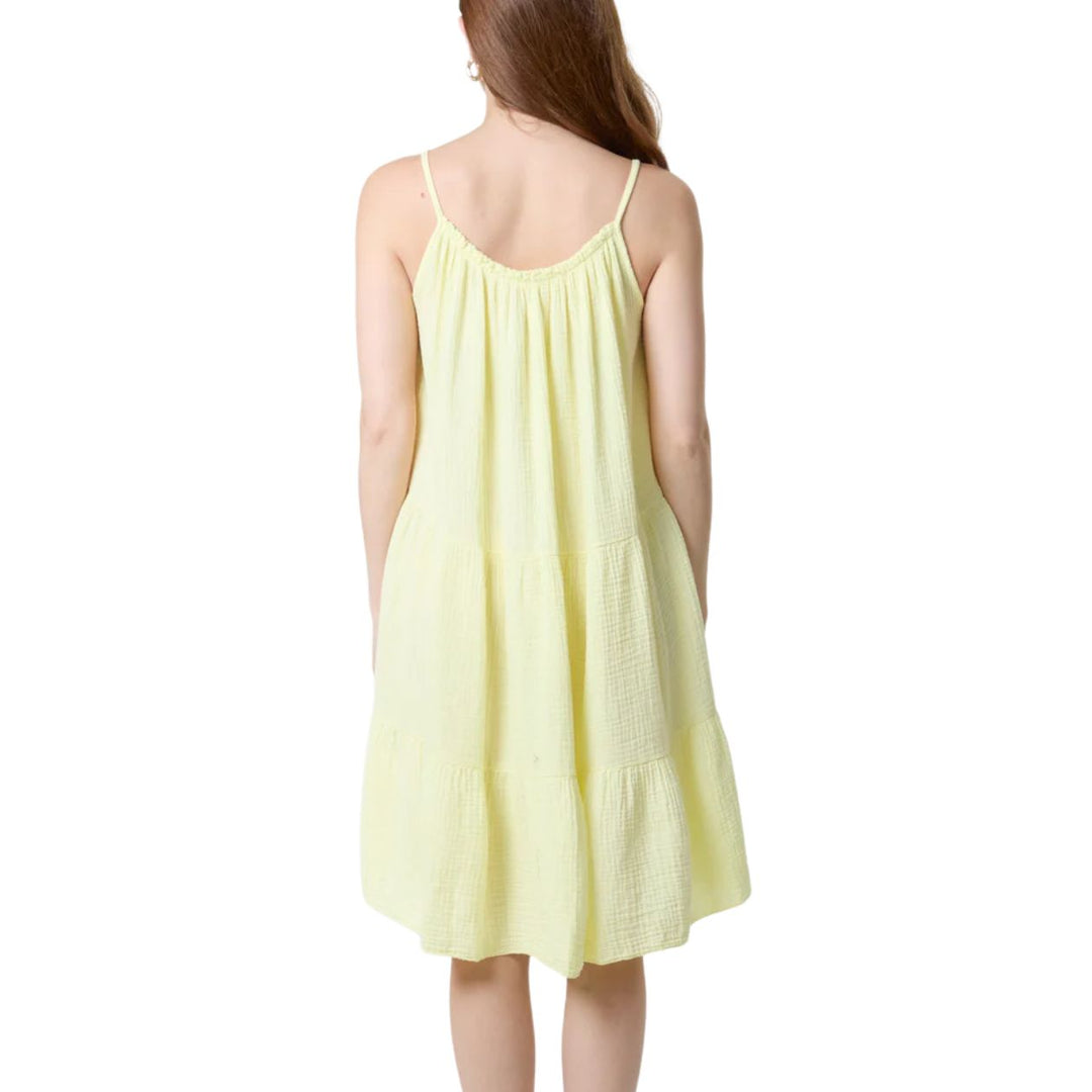 Cora Cotton Cheesecloth Tiered Summer Dress Lemon Yellow