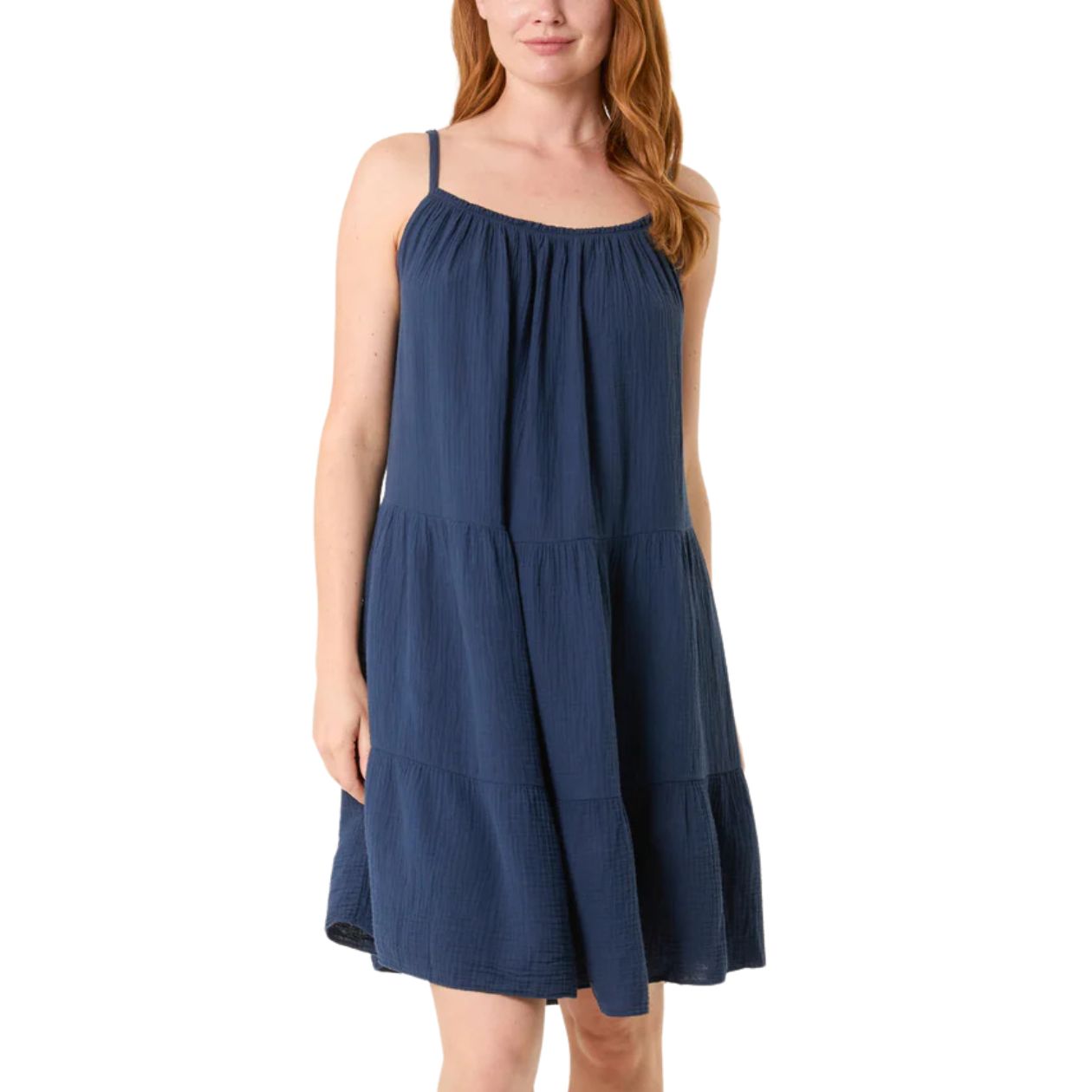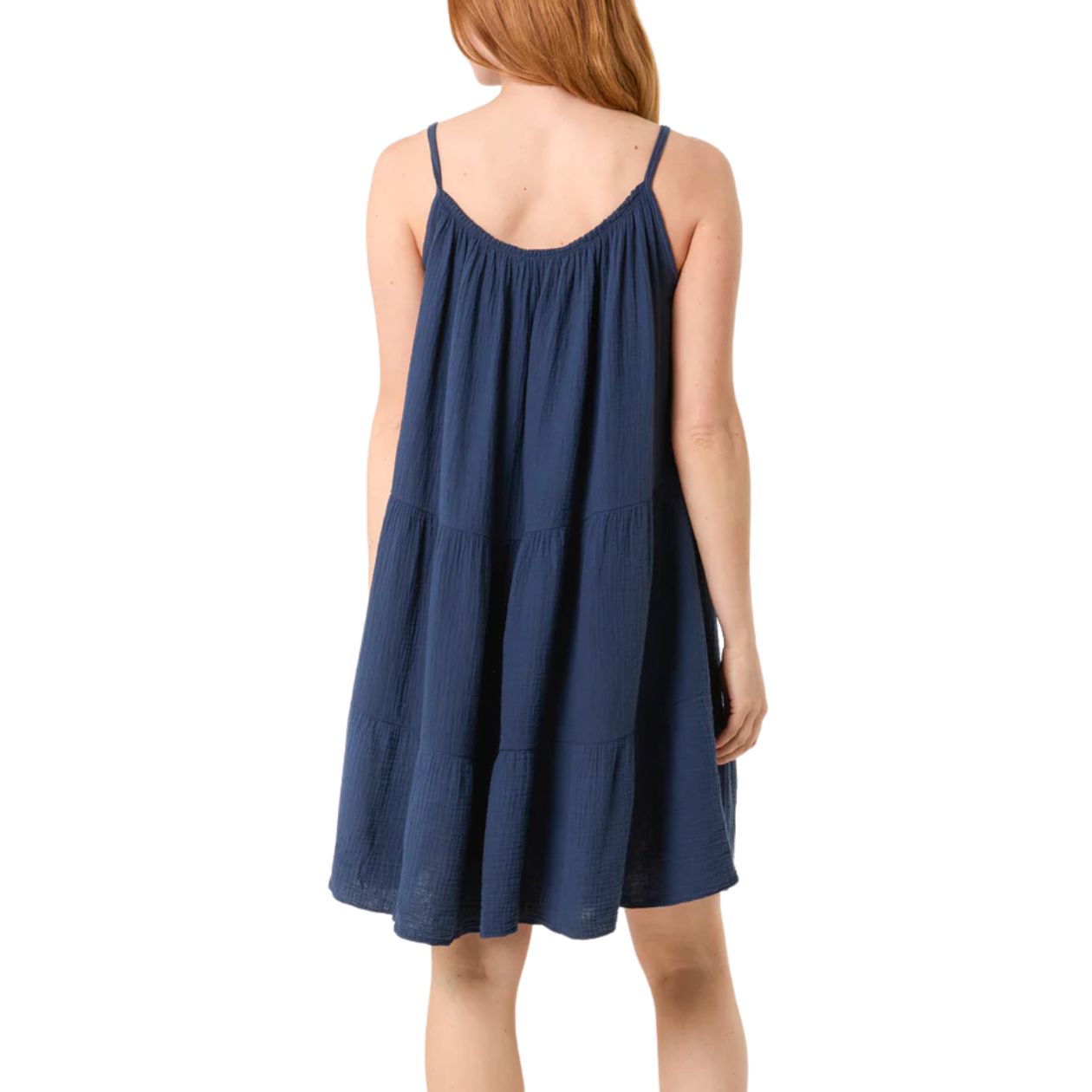 Cora Cotton Cheesecloth Tiered Summer Dress Navy Blue