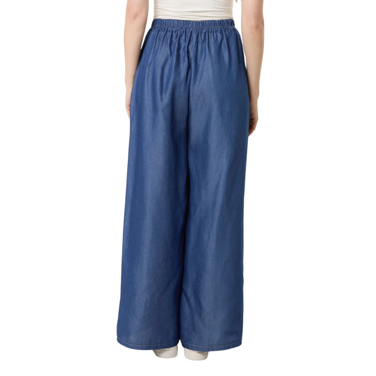 Elastic Waist Tencel Wide Leg Trousers Dark Denim