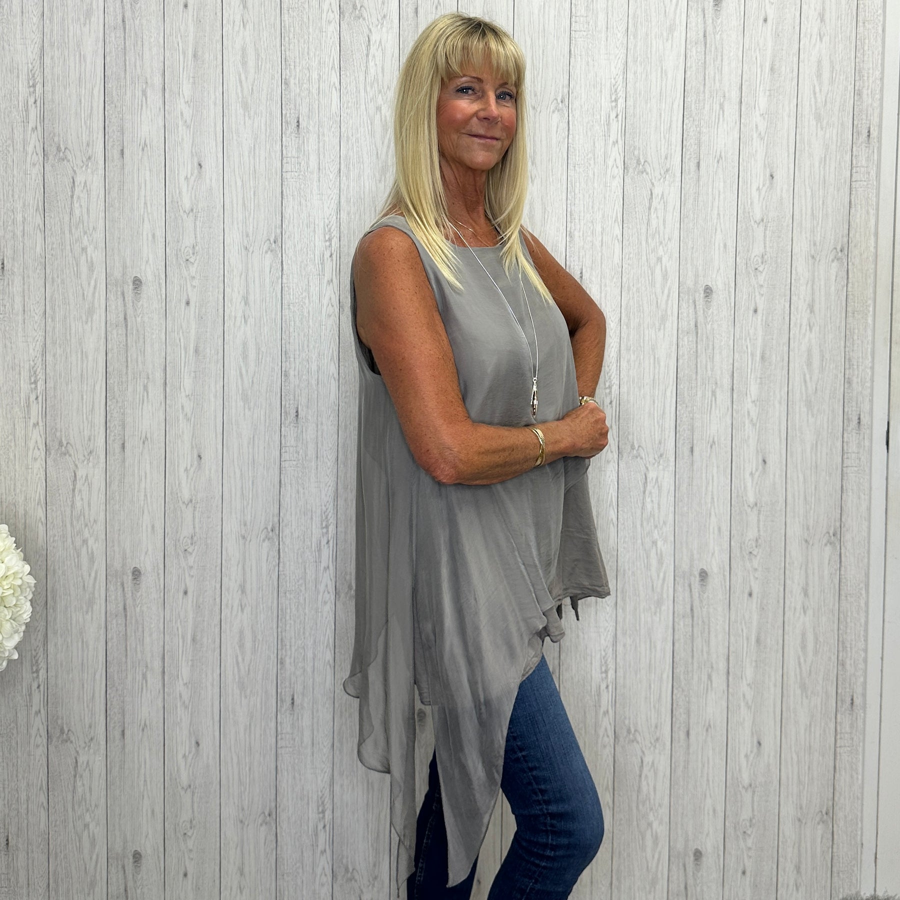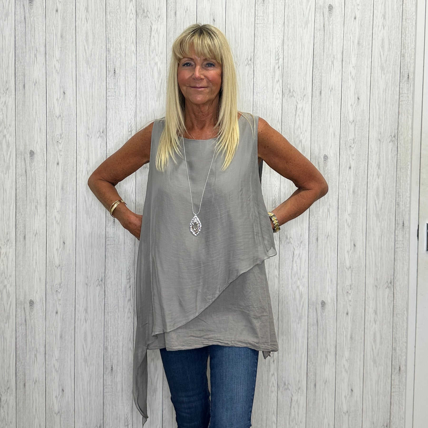Made In Italy Celine Silk Cotton Mix Tie Sided Top Mocha Brown - Sugarplum Boutique
