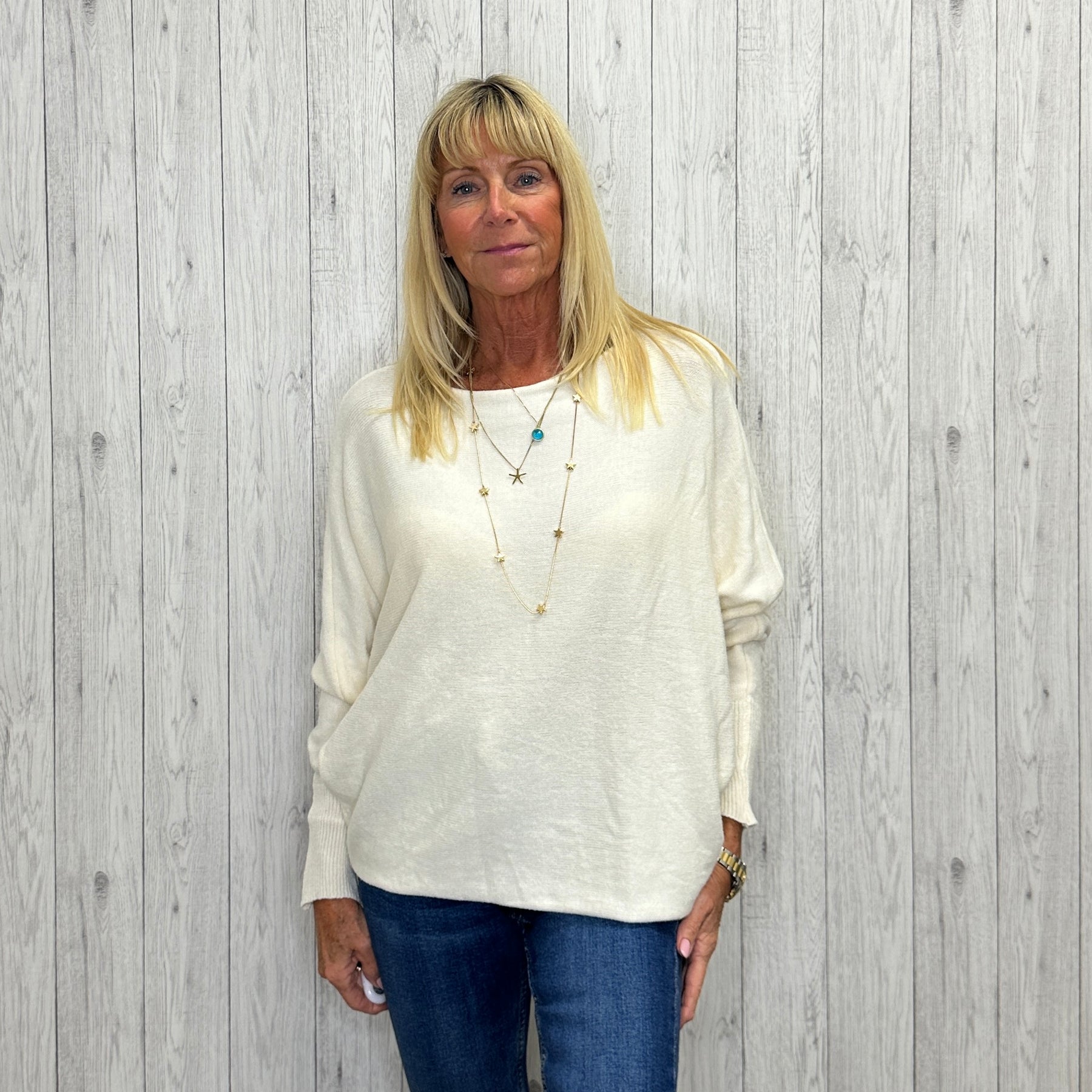 Made In Italy Polly Pearl Back Jumper Batwing Sleeve Cream