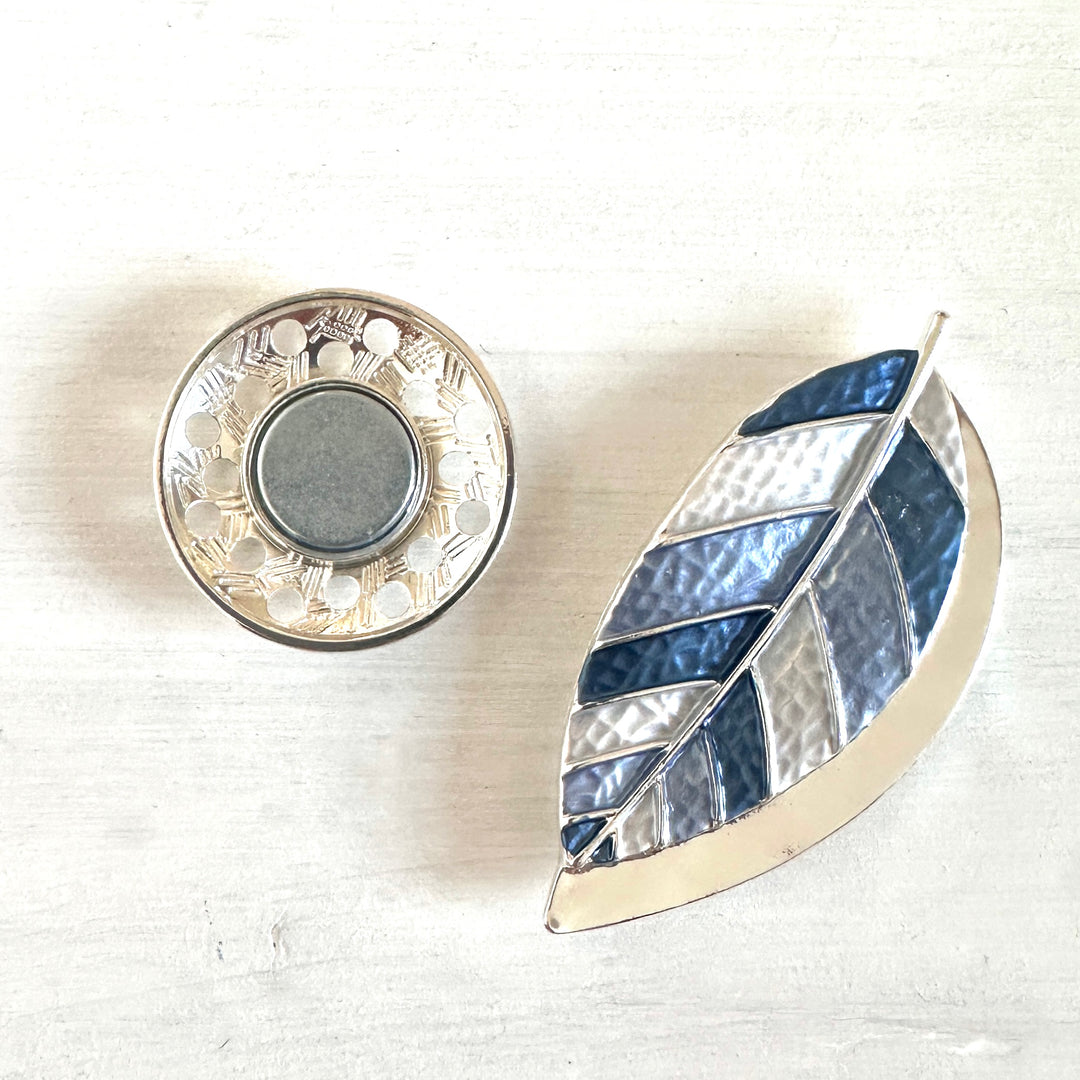 Magnetic Double Leaf Scarf Brooch Denim Blue