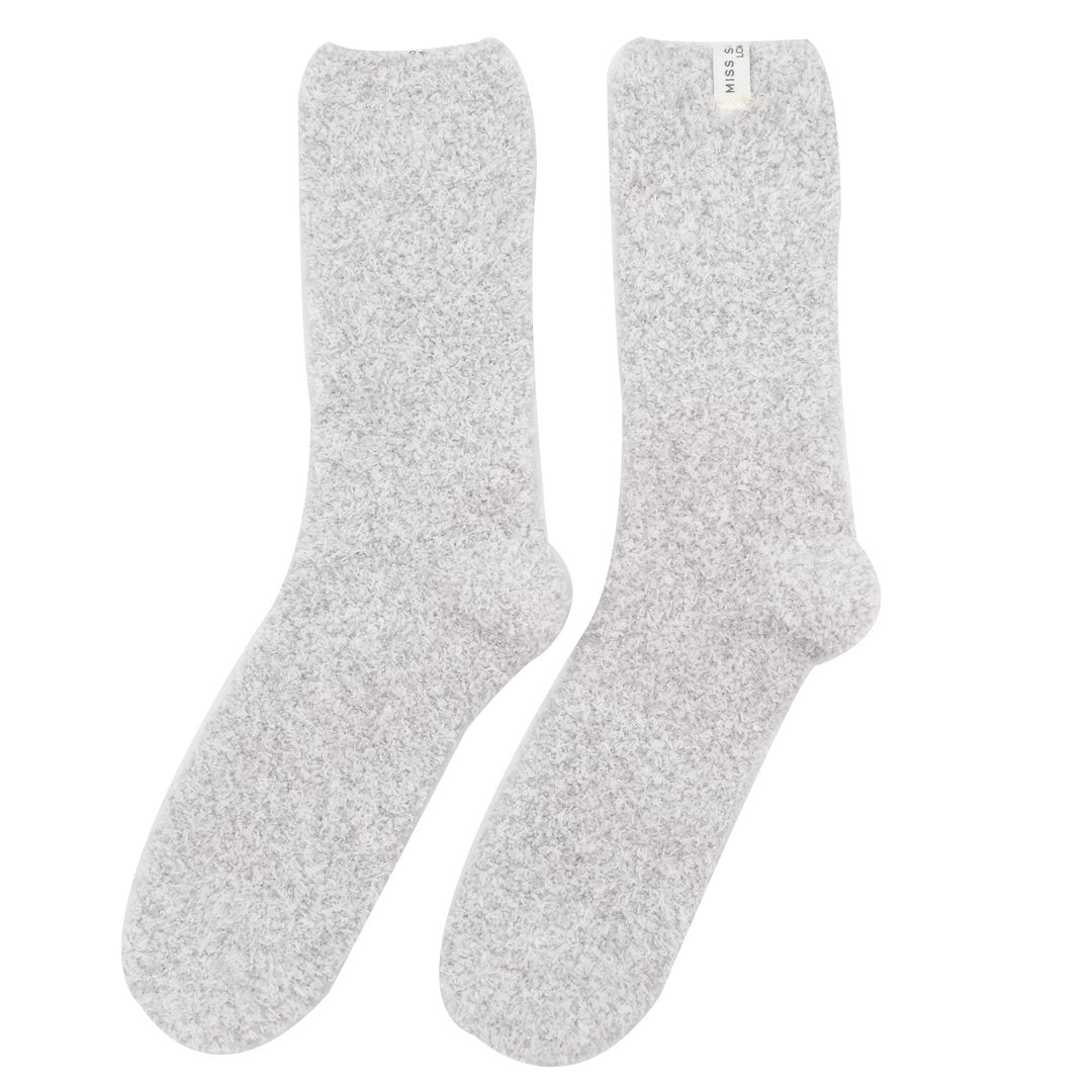 Miss Sparrow Cosy Fuzzy Plain Ladies Socks Silver