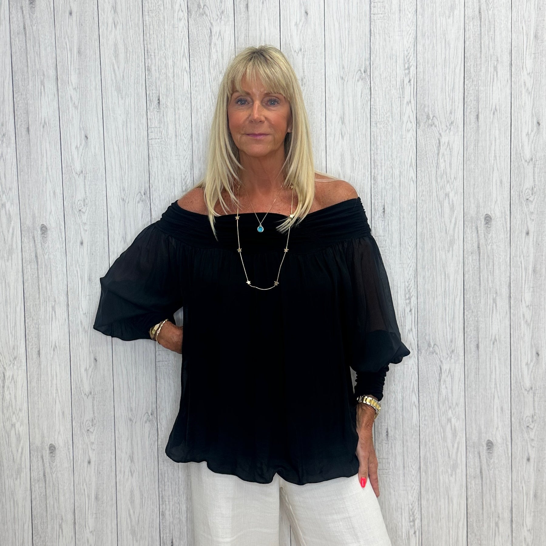 The Philly Phase 8 Silk Top Mocha Black is a favourite among our customers. Featuring a flexible loose neckline that suits every body shape, it can also be styled off the shoulder for a chic look. With jersey detailing on the neckline, cuffs, and hem, this top is perfect for any event. Available in multiple colours, you can find the ideal shade to match your style.