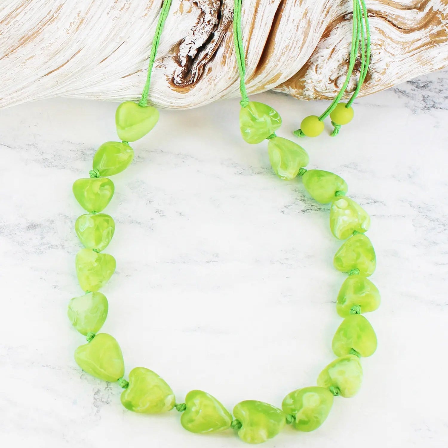 Constructed with top-quality materials, the Resin Heart Necklace Green boasts elegant resin heart design beads on a sleek black cord, providing a distinctive and stylish accent to any ensemble. Its vivid shade of blue offers durability and a chic option for those with a keen eye for fashion. The adjustable toggle ball adds convenience to this striking accessory.