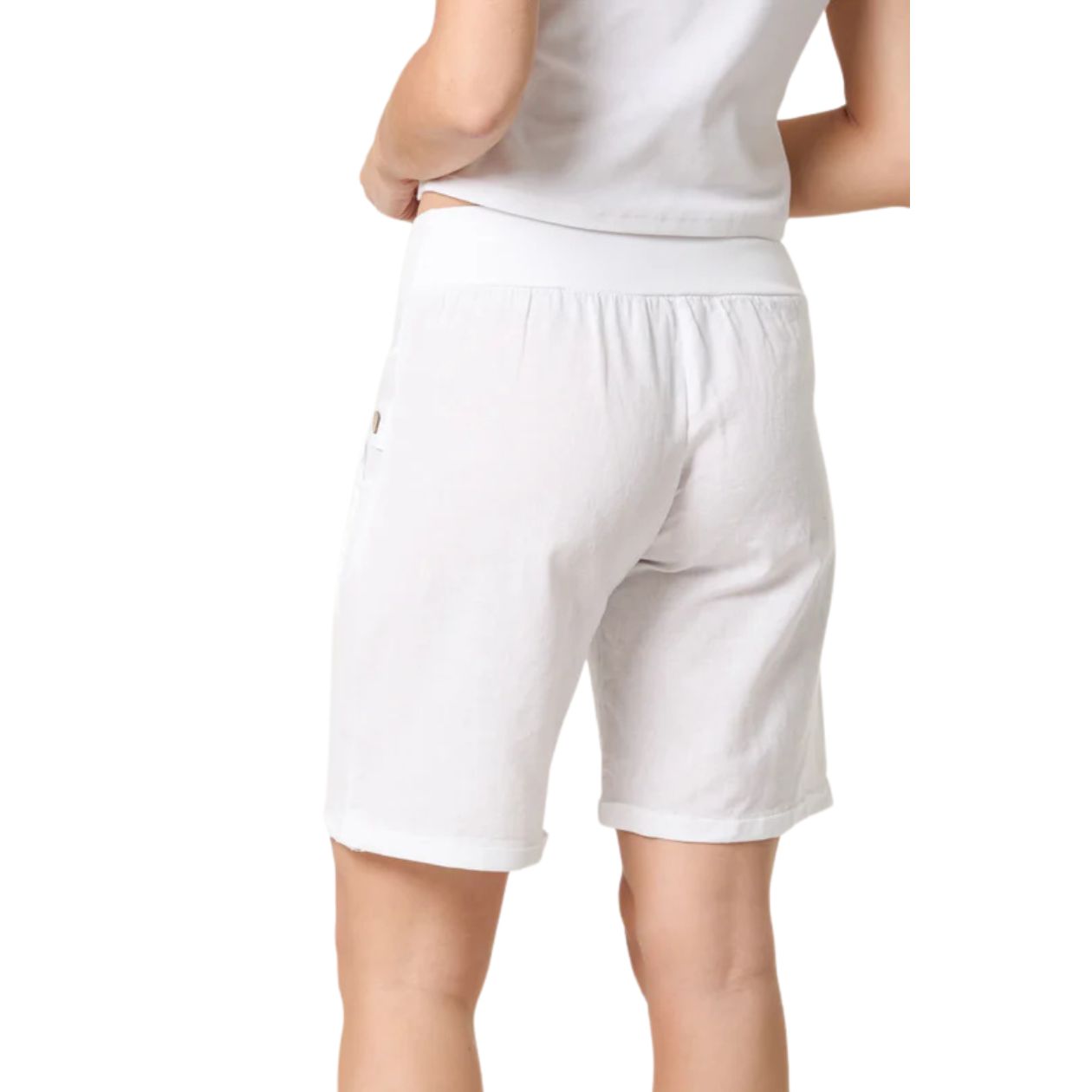 These delightful Shampnan Cotton Linen Blend Shorts in White offer exceptional comfort with their adaptable elasticated waistband. Featuring a functional design with dual pockets, stylish button accents, and adorable small turn-ups for added flair. The airy cotton-linen fabric makes these shorts perfect for bright days and hot-weather outings.
