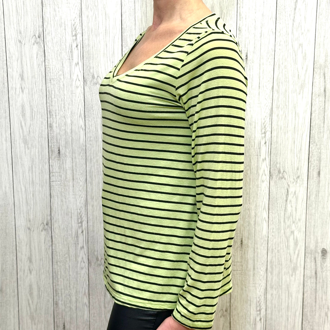 The Stellina Striped Top is a versatile wardrobe essential made with a luxurious cashmere mix fabric. Its stretchy and soft material ensures a comfortable fit, while the flattering v neck adds a touch of sophistication. Featuring a nautical stripe look, this top is perfect for layering.