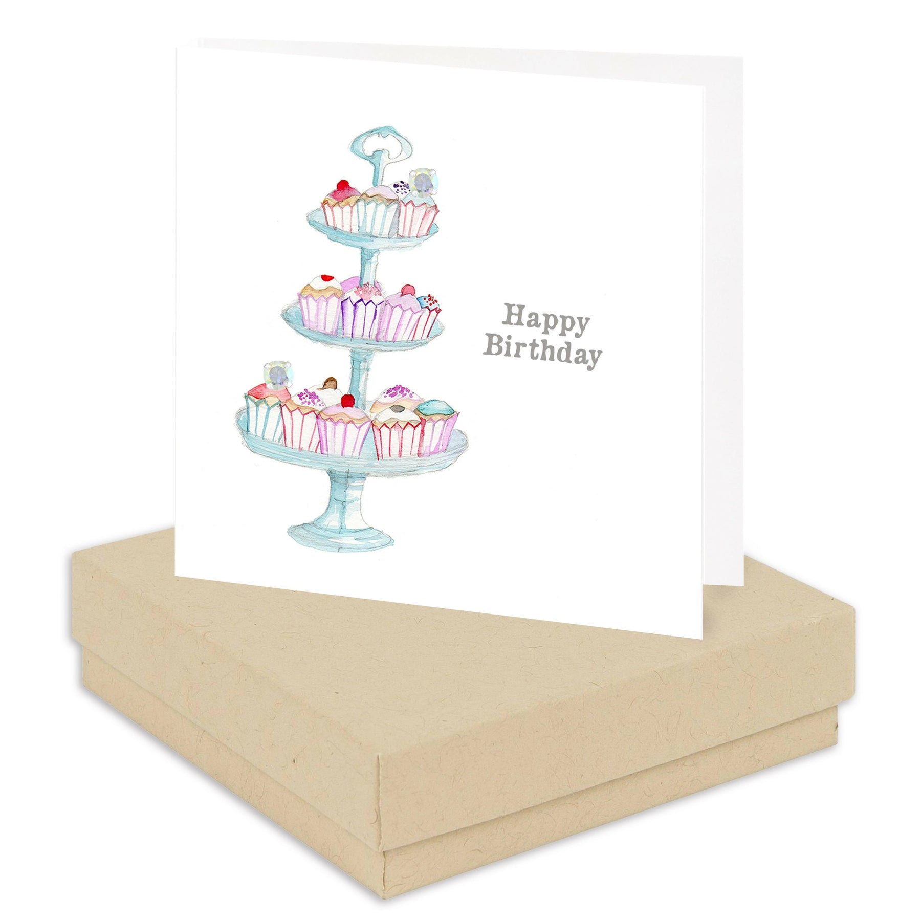 Sterling Silver Stud Earrings in Gift Box on Happy Birthday Cake Stand Card