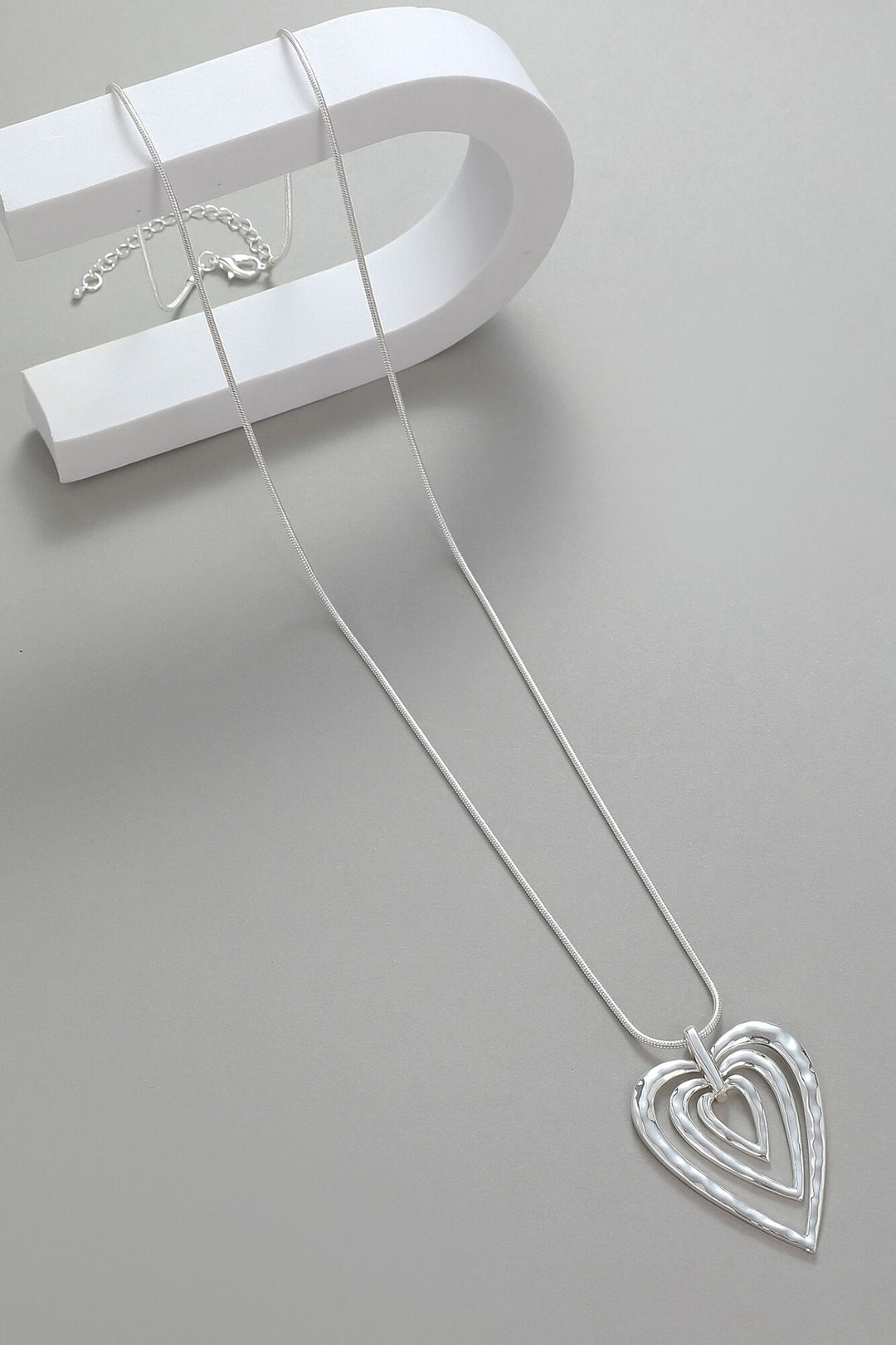 Triple Heart Long Necklace Silver - Sugarplum Boutique